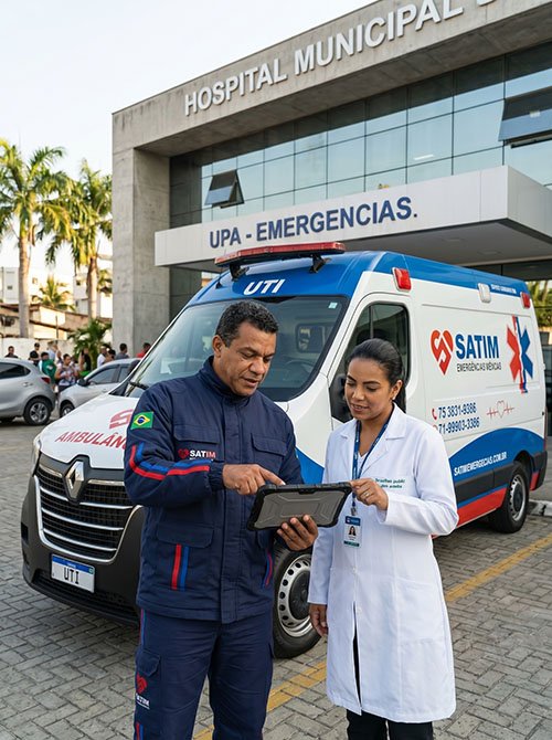 Referência em logística de saúde na Bahia, a SATIM atua com excelência em Remoções de Alta Complexidade, Atendimento Domiciliar (Home Care) e Cobertura de Eventos. Presentes em 7 municípios, garantimos infraestrutura avançada e empatia radical para atender pacientes particulares, empresas, convênios e governos. Confiança, segurança e técnica exata em cada segundo.
